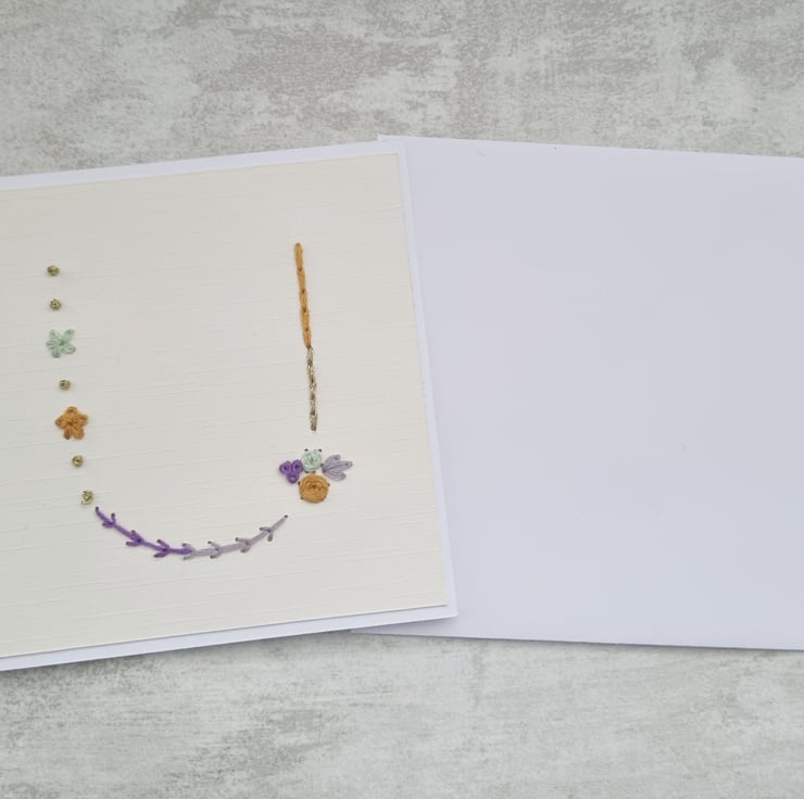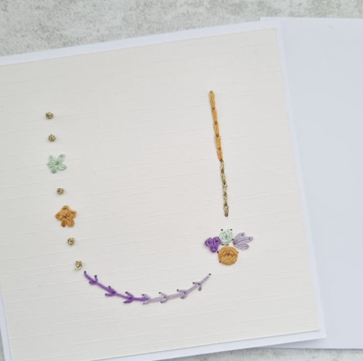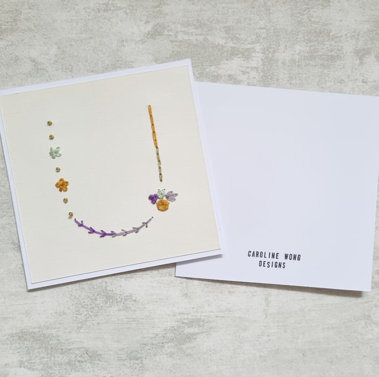 - Design is intricately embroidered onto ivory premium linen card; adding a sophisticated layer of texture.