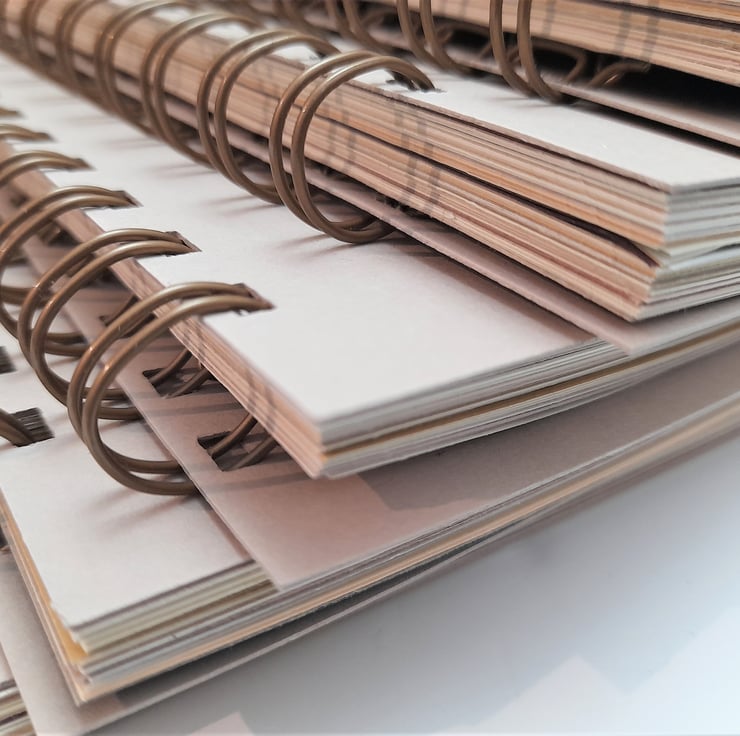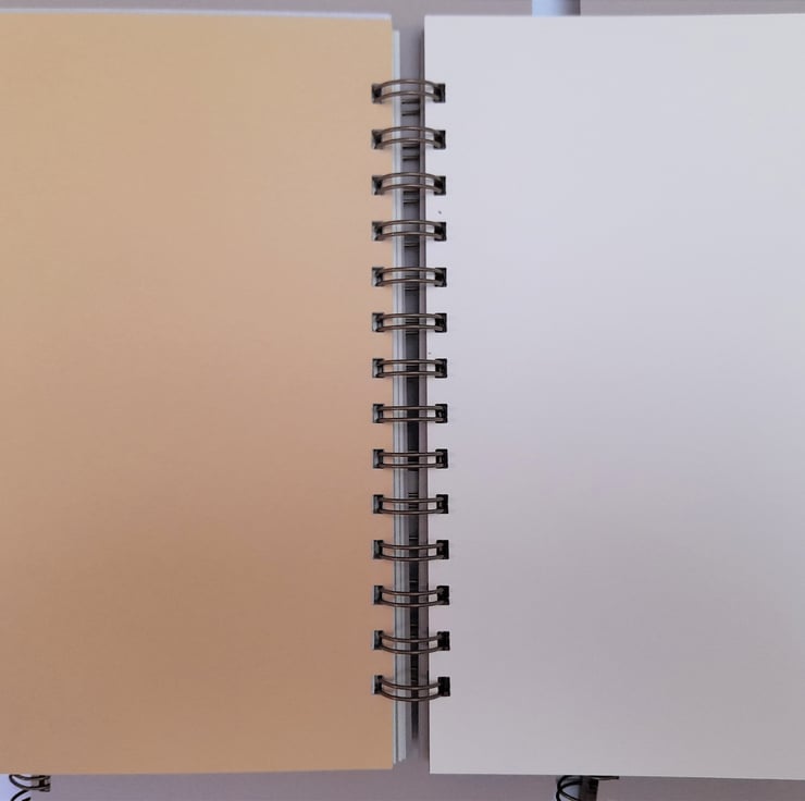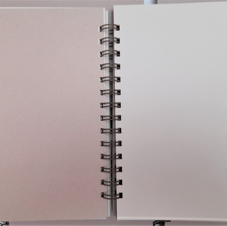 A hand made blank, neutral colour themed junk journal / notebook consisting of a lovely variety of papers and card in different colours and weights - all neatly bound with a bronze wire and with plain buff card covers. This would be fabulous for creative junk journalling, for you to personalise and embellish.