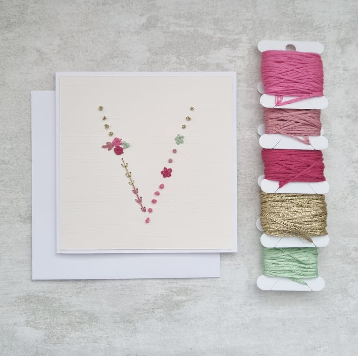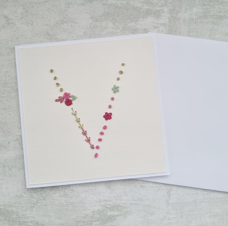 Letter V Embroidered Card, Personalised Bridesmaid Card, Birthday Keepsake Card