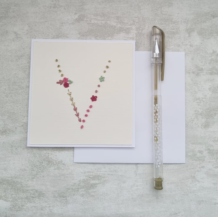 This letter V card is an ideal choice for special occasions such as, bridesmaid, birthdays, thinking of you or a Thank You.