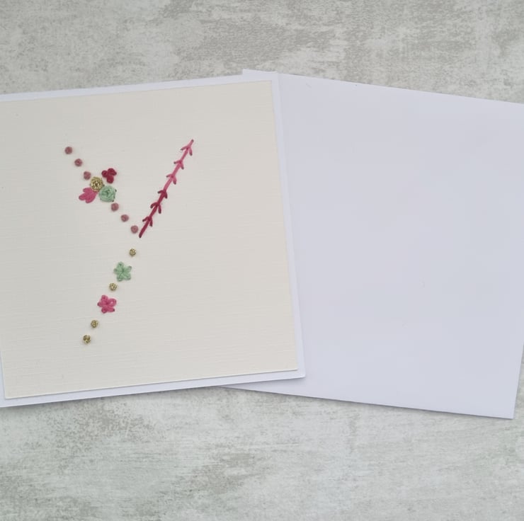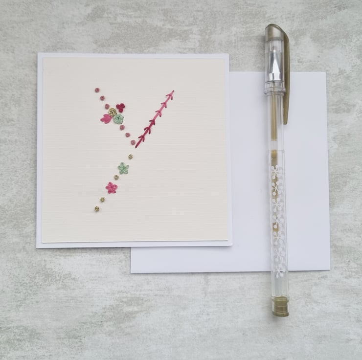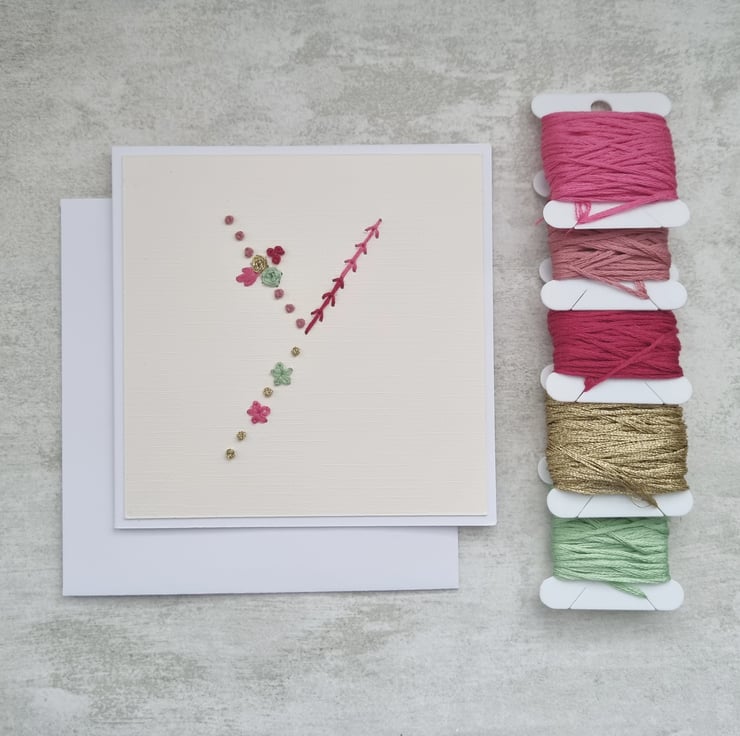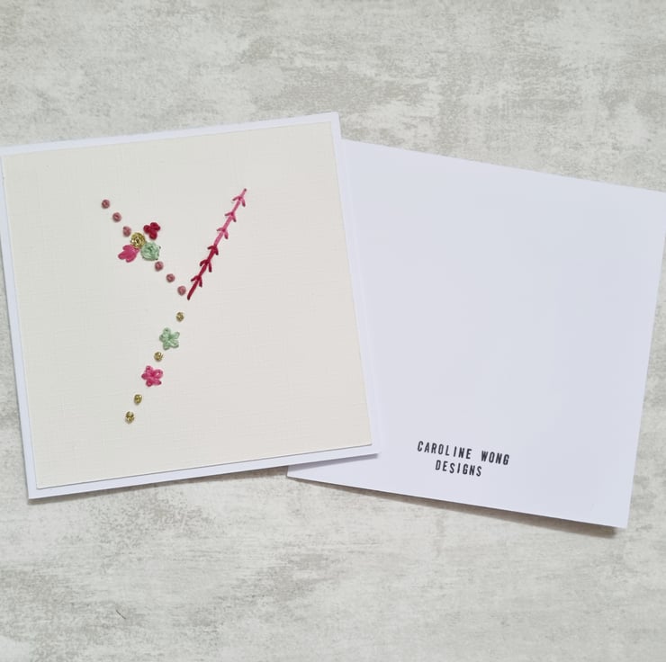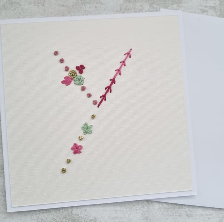 Letter Y embroidered card, hand stitched initial card, hand sewn keepsake card