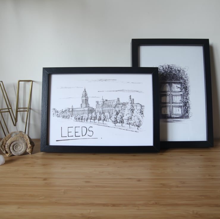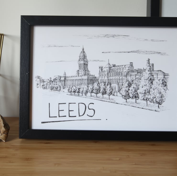 A monochrome finish to this Leeds Skyline print which features the Town Hall and Art Gallery, which are some of the cities main landmarks. A cracking gift for that Yorkshire fan.