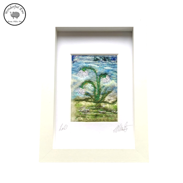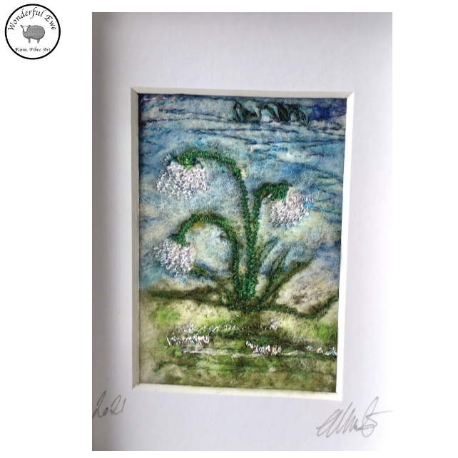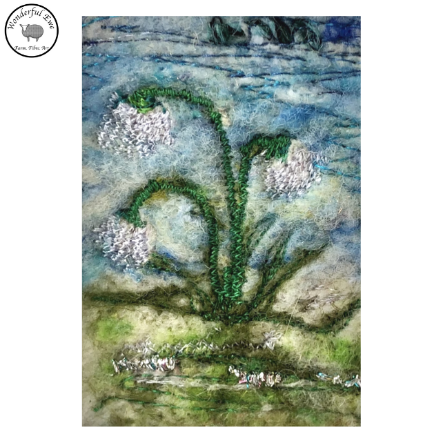 This miniature felt painting of Snowdrops is full of texture and fibres