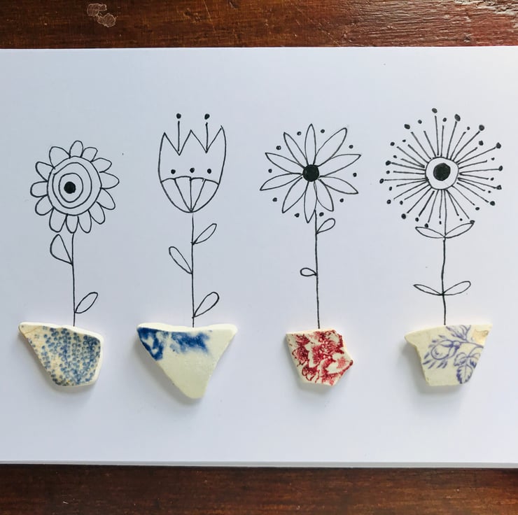 A unique blank card made with Devon pottery found on my local beach. Card is blank inside for your own message and can be framed and kept. 12cm x 19cm