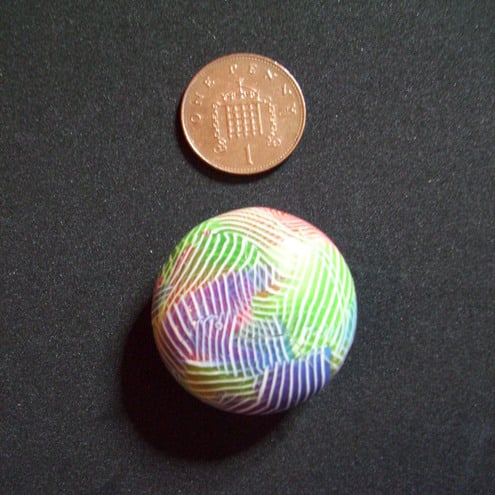 Hand crafted beautiful polymer clay bead measuring approx 3cm wide and up to 1.5 cm deep with 2mm bead hole. Layered in multiple slices of my handmade polymer clay canes, with a crackle effect and varnished to a high sheen. Colours include green,blue,red and purple with stripes.