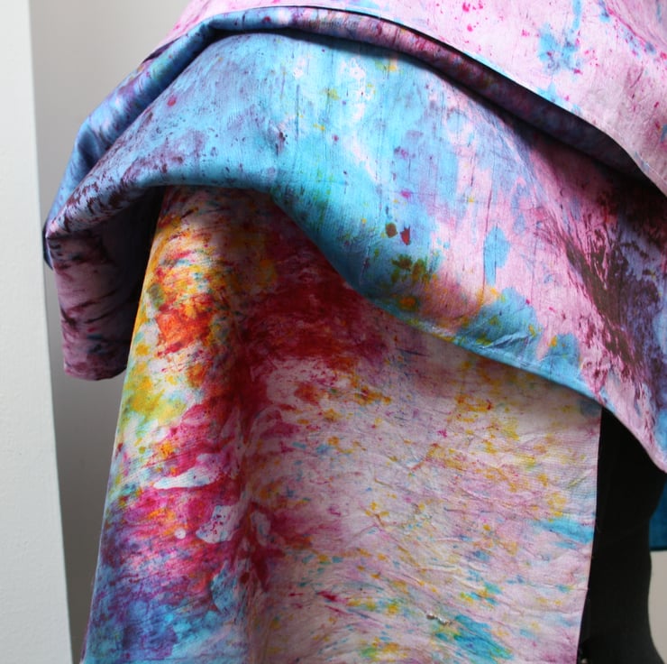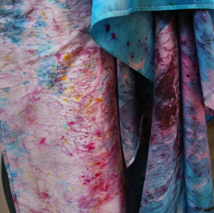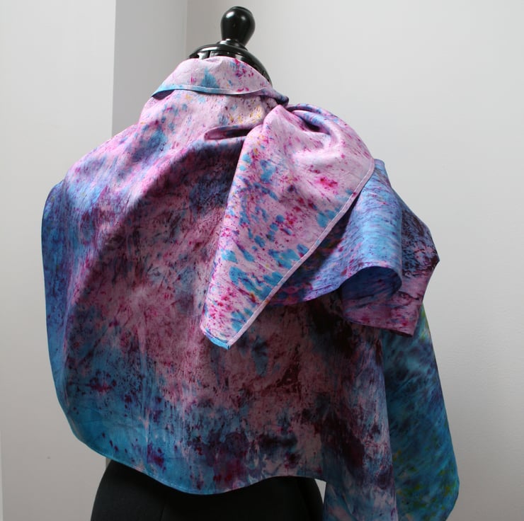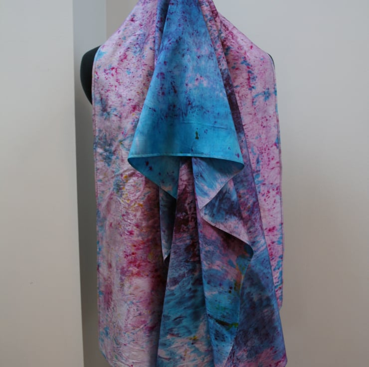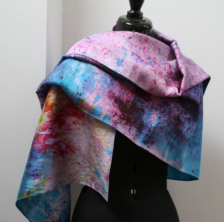 A hand-dyed silk scarf, great for giving a unique accent of colour to your outfit. Hand-dyed in rainbow shades by me in Oxfordshire, and completely unique!