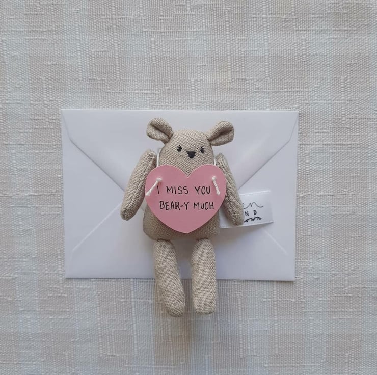 This small bear is a perfect gift to send to that person you are missing in this time. A bear that can be encouraging and bring a smile to someones face.