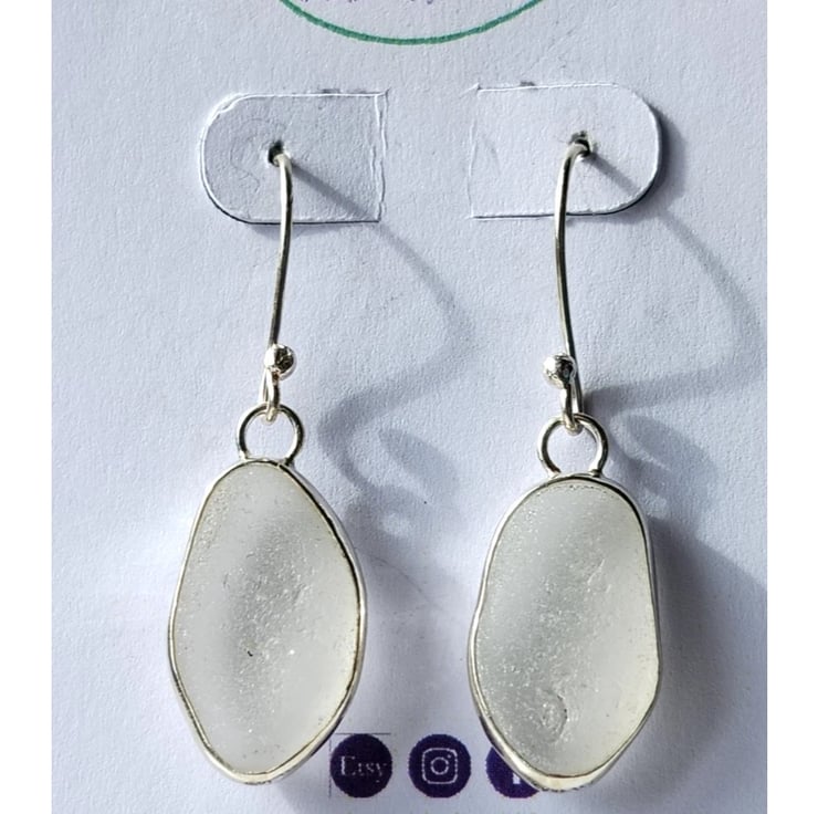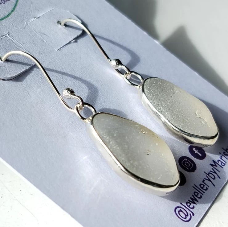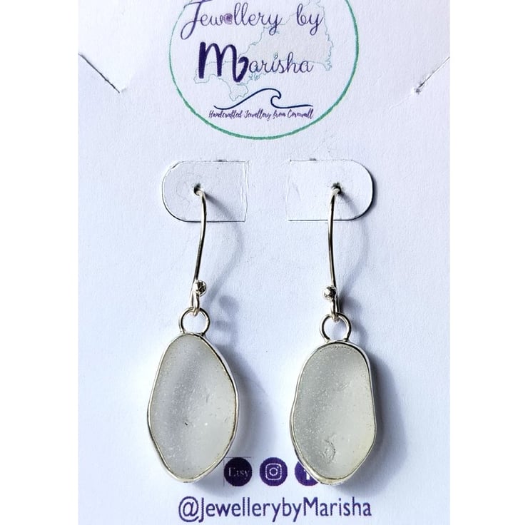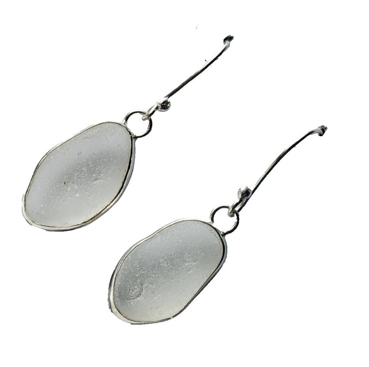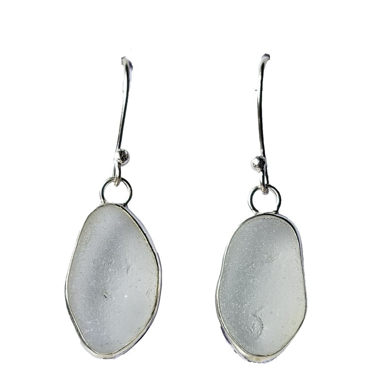 Handmade Recycled Sterling Silver & Clear White Cornish Seaglass Earrings