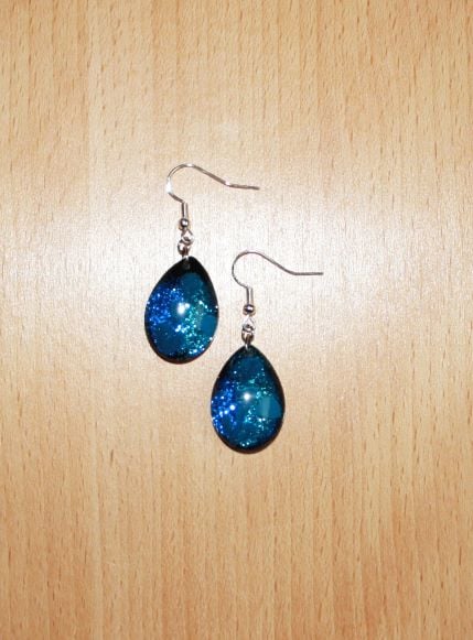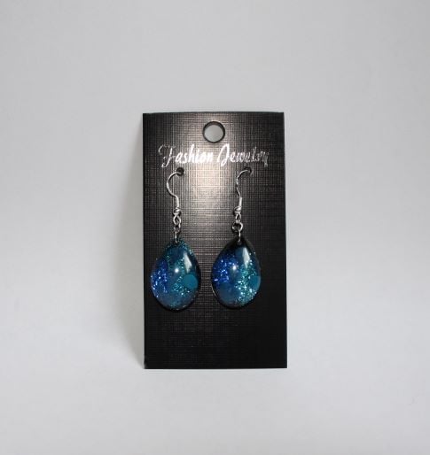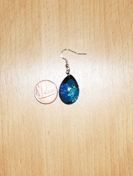 Lovely hand made blue sparkling tear drop (NO VOC, NO BPA) Non yellowing arts and craft resin earrings.