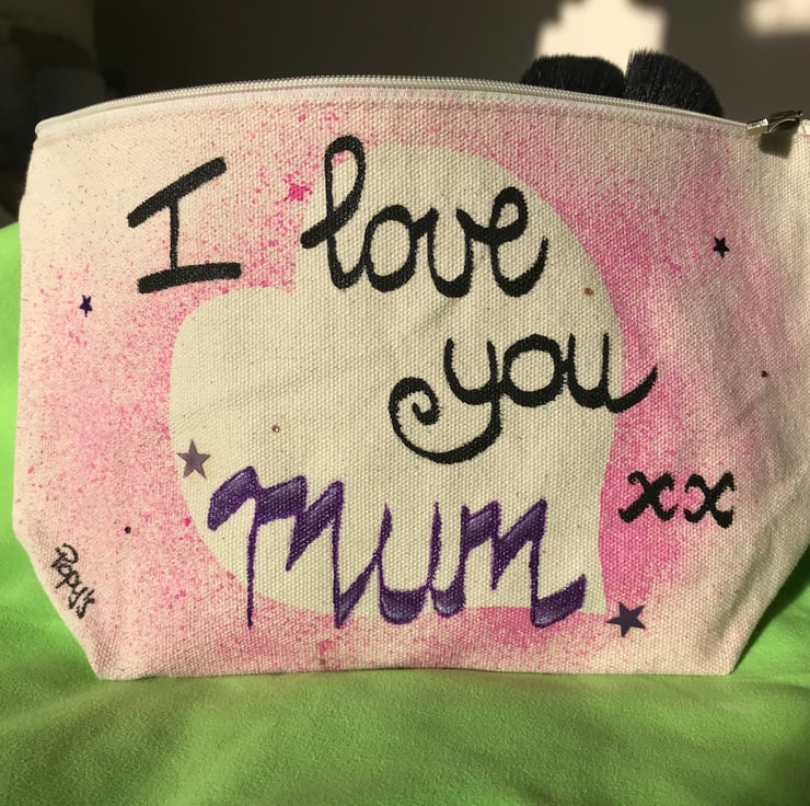 Thank you for looking at this hand painted makeup bag designed and painted by me with mums in mind. Perfect to remind your mum you love her every time she starts her makeup routine!