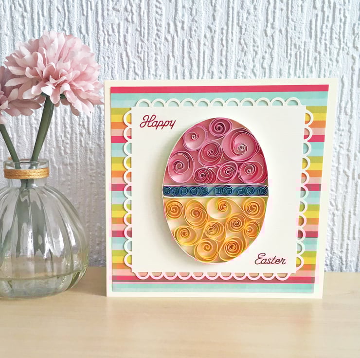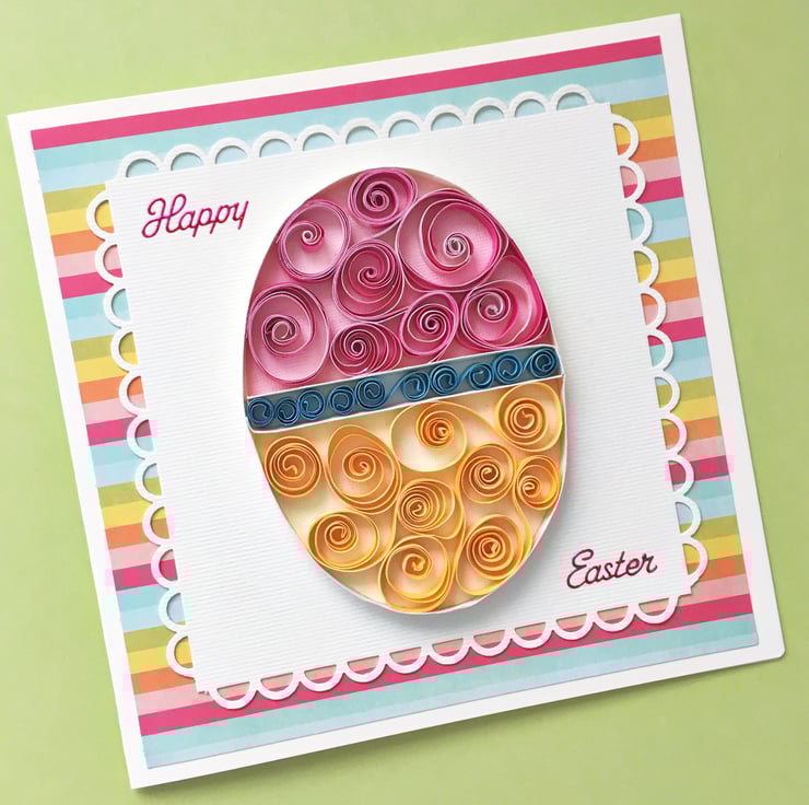 This Easter card features a beautifully quilled Easter egg.