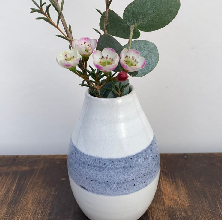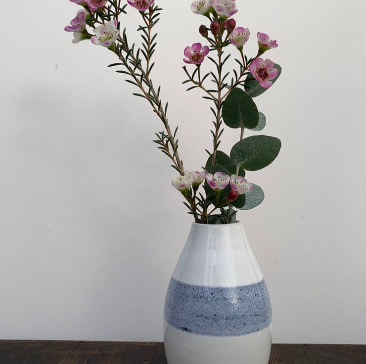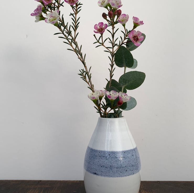 Handmade on the potters wheel, these vases are freely thrown, usually after a day of repeat production throwing.