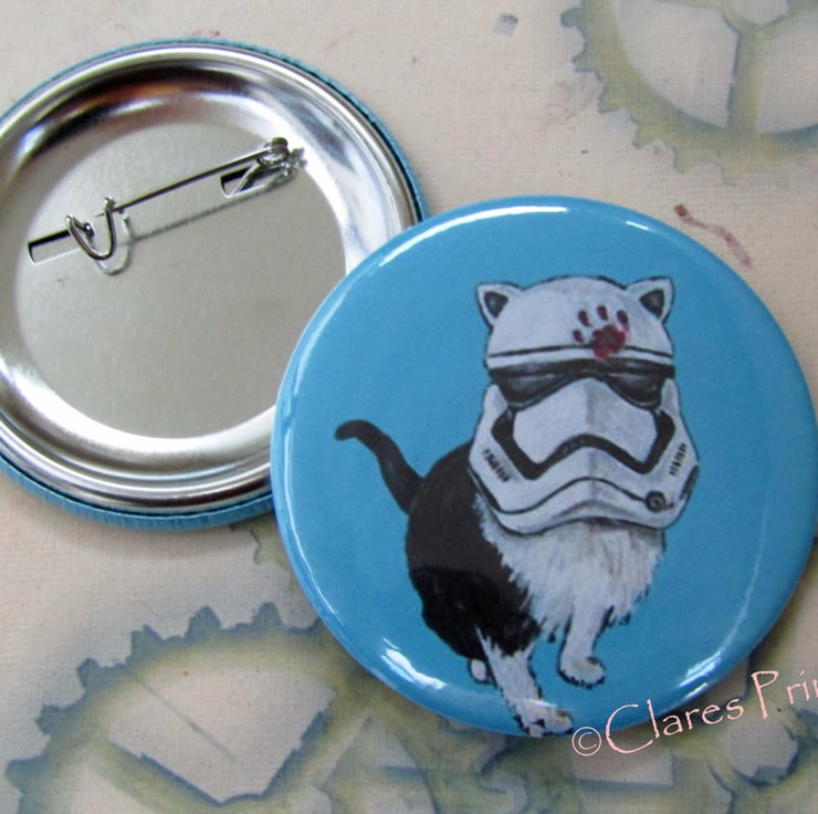 Stormtrooper Cat badge approx size 58mm (1 included).