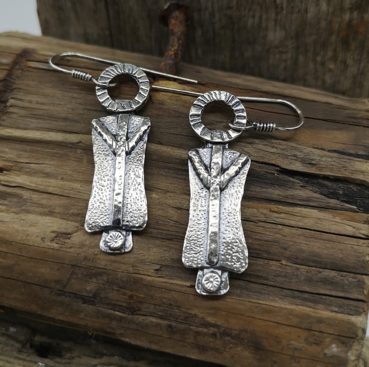 Made using traditional jewellery making techniques, piercing out shapes with my jewellers saw, soldering and adding detail with metal punches and a hammer.