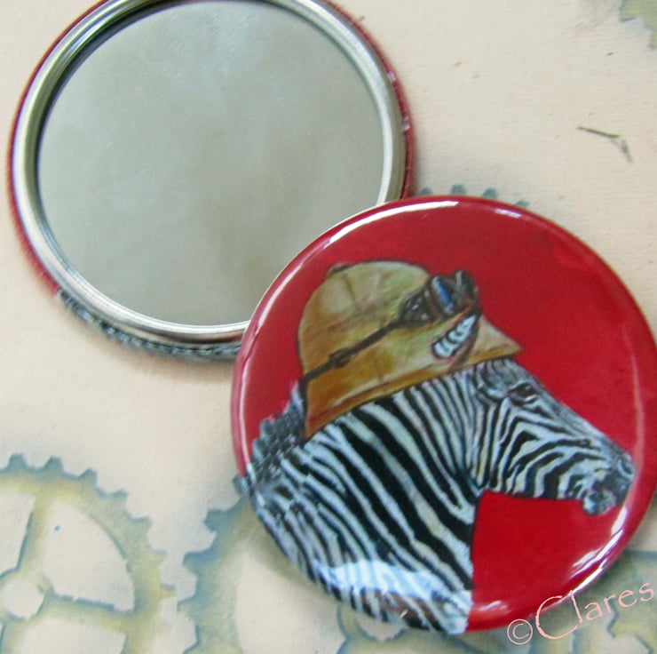 Steampunk Zebra pocket mirror approx size 58mm (1 included).