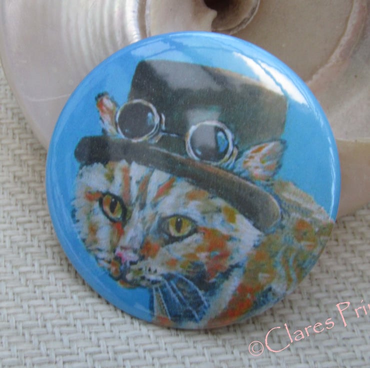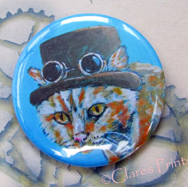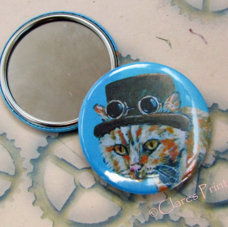 Steampunk Ginger Cat pocket mirror approx size 58mm (1 included).