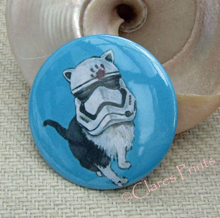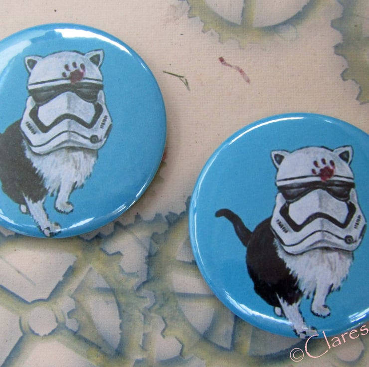 Stormtrooper Cat pocket mirror approx size 58mm (1 included).