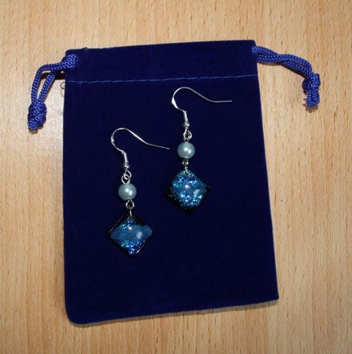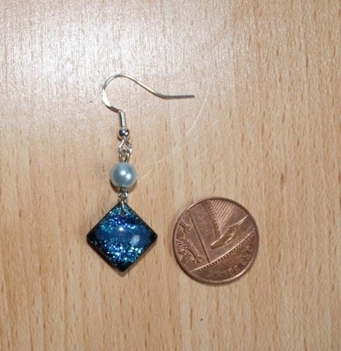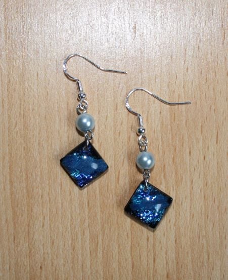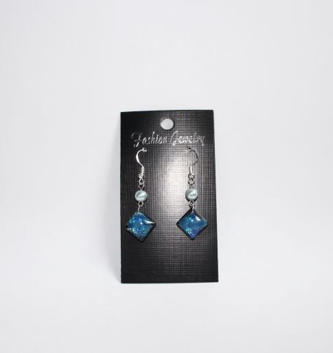 Beautiful hand crafted blue sparkling square (NO VOC, NO BPA) Non yellowing arts and craft resin earrings.