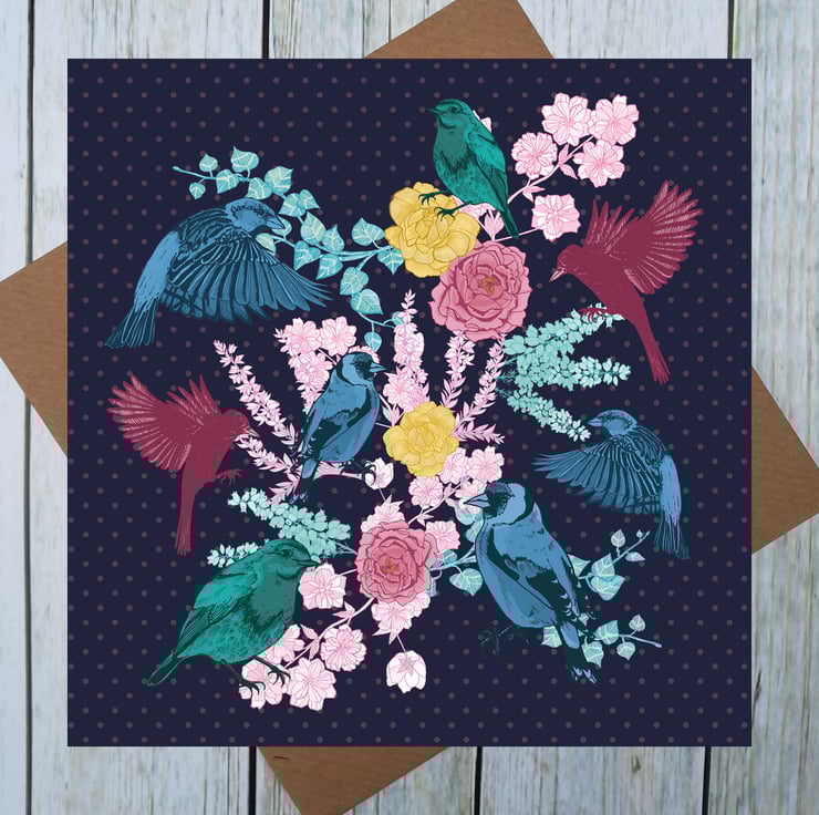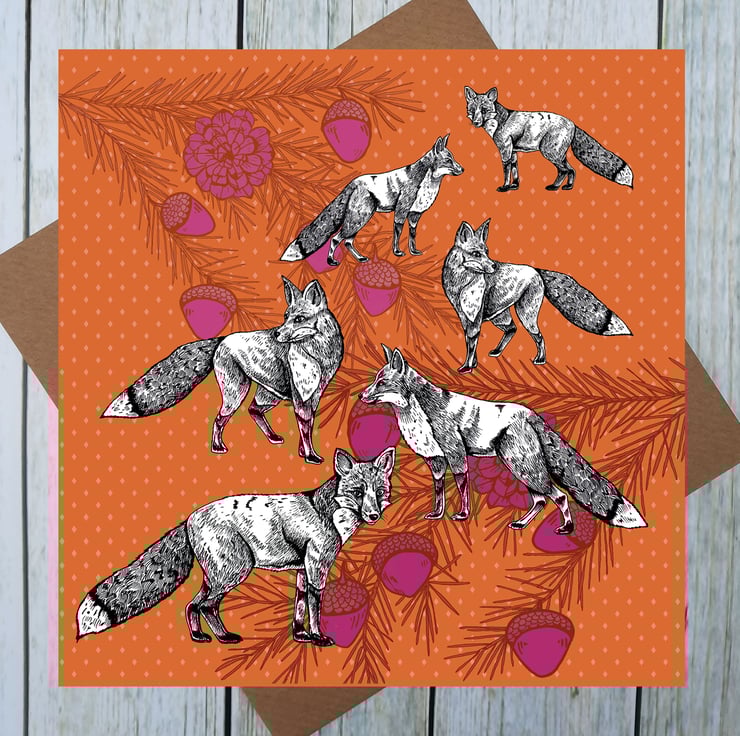 Pack of 4 greetings cards featuring foxes, owls, birds and a rockpool. The greetings cards are brightly coloured and eye catching with hand drawn animals and flowers.