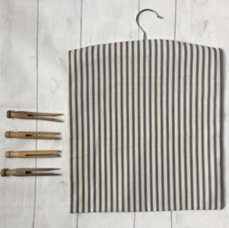 This peg bag in a blue and white ticking is just right for hanging out the first washing of 2021! It has a lovely utilitarian feel to it and a label that says "Best of British" to finish it off.