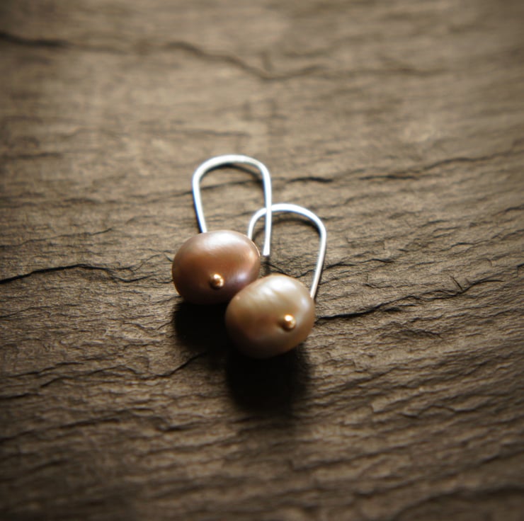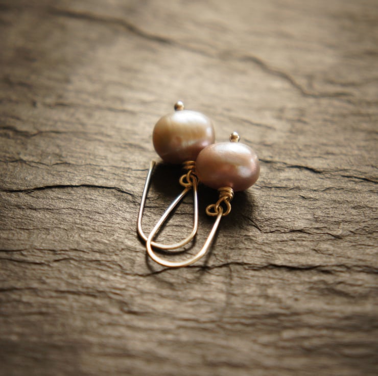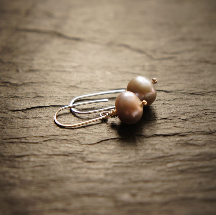 A unique pair of earrings, sterling silver threaded with purple lavender fresh water pearls,