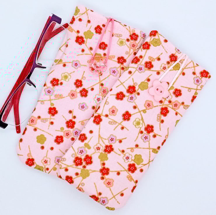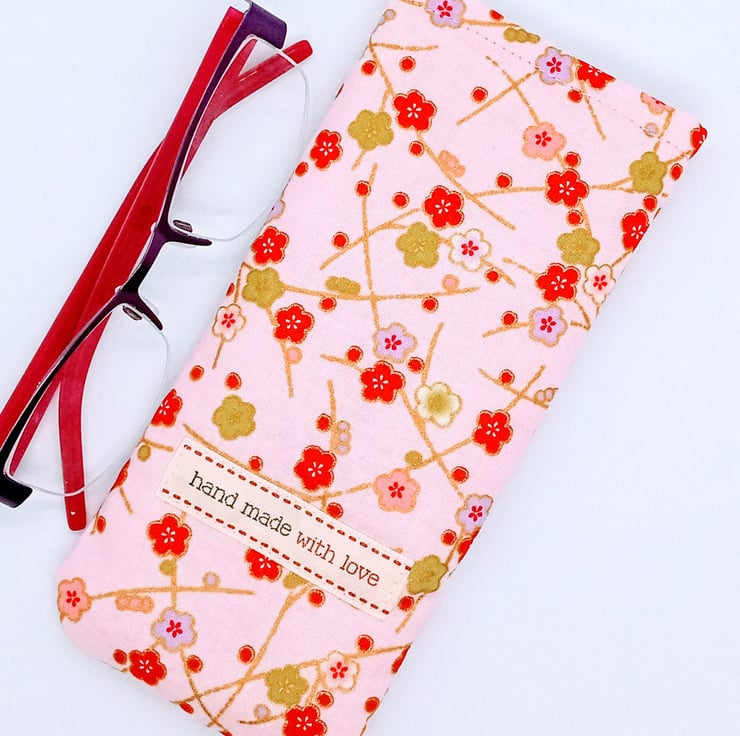 It is wadded to protect your glasses and features a handmade with love label on the back. Lining is in pink or green cotton in keeping with the theme.