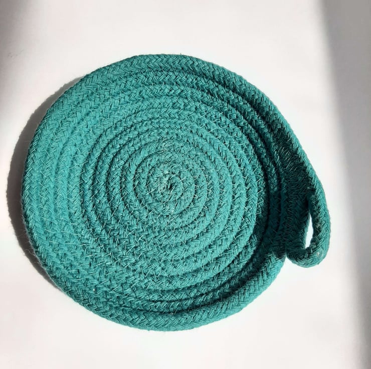 A little home for your favourite things. Handmade from 100% turquoise cotton rope.