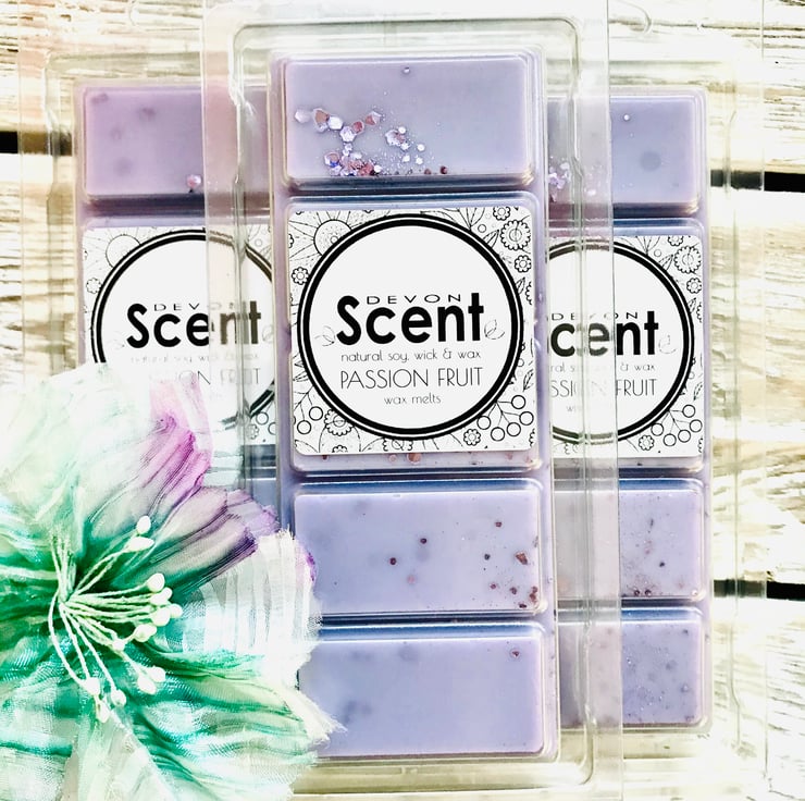 Our highly fragranced long lasting Passion Fruit Snap Bar Wax Melts have a sweet and fruity accord mixing sweet vanilla with fresh and uplifting passion fruit.