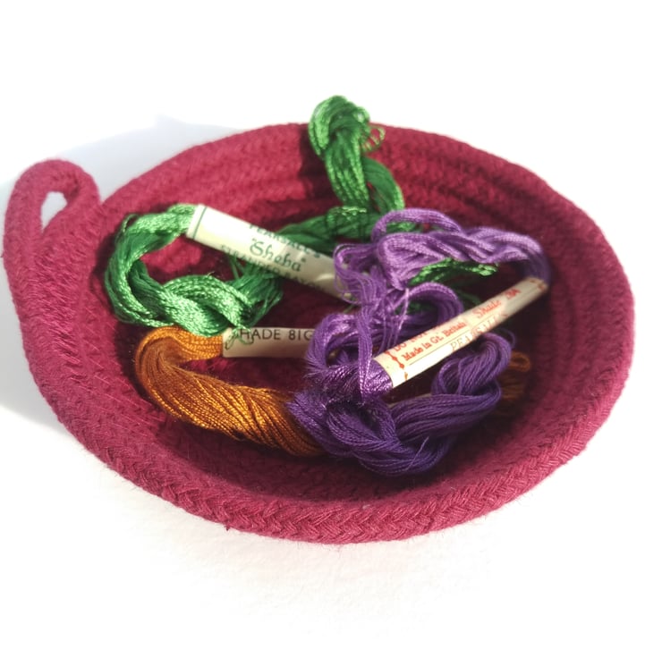 A little home for your favourite things. Handmade from 100% cotton rope in a deep wine colour, a lovely rich burgundy.