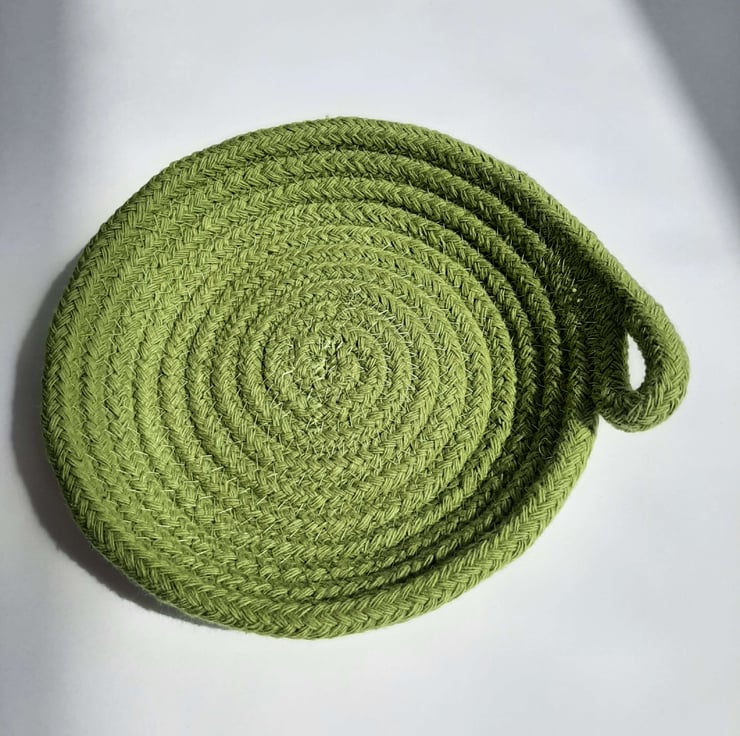A little home for your favourite things. Handmade from 100% spring green cotton rope. A light and bright soft spring green colour, cheerful but not in your face.