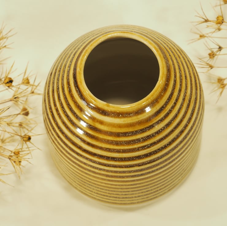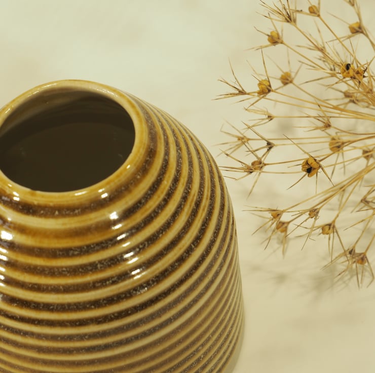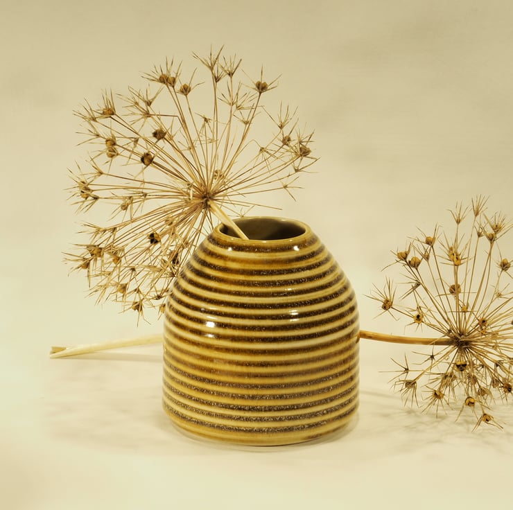 A small vase, styled to match the Polarstar Pottery Honey Pot.
