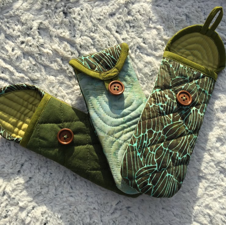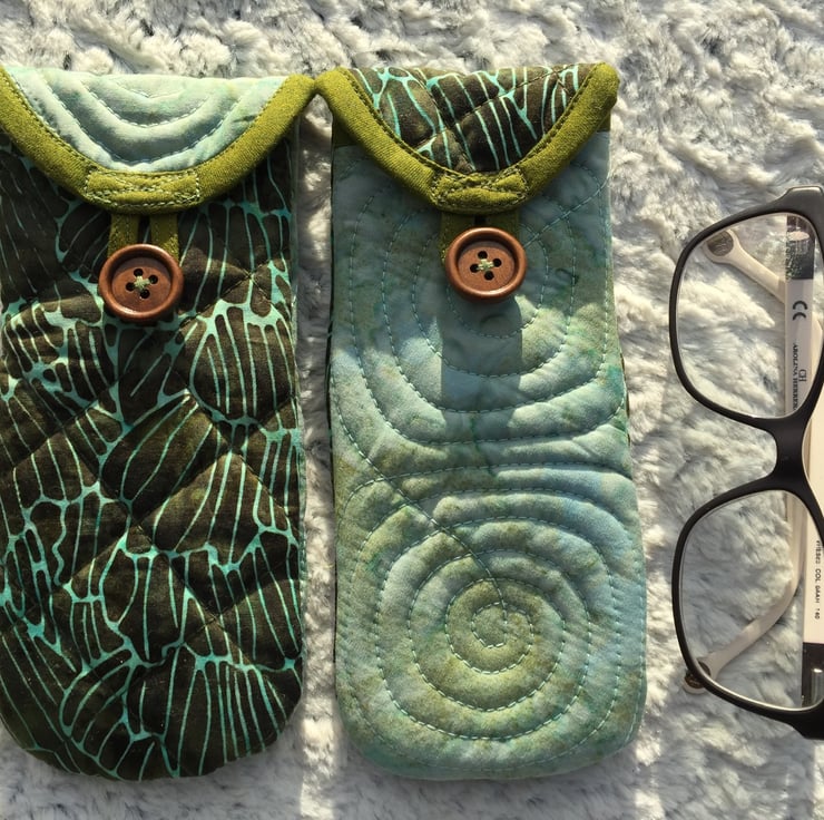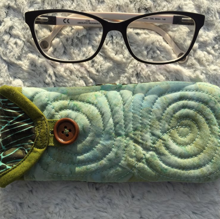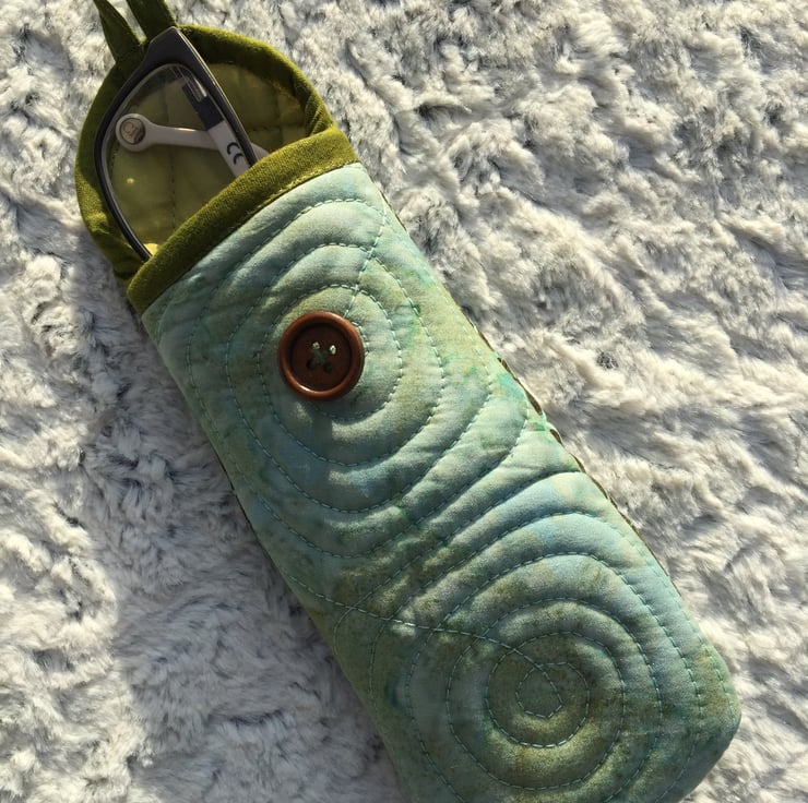 Your glasses will be protected at all times, in this quilted, soft and pretty eyeglasses case, made from 100% batik cotton fabric. The pouch is padded and has a button closure to make sure your glasses won’t fall out. The design is practical and allows you easy access to your glasses - just tilt and slip them onto the longer back area. The little loop closure can also be used to hang the case somewhere if wanted.