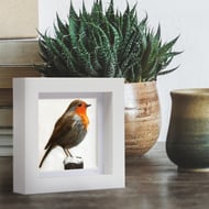 This is a little 3D fabric Bluetit, framed in a sturdy recyclable aluminium tin, with a wire hanger.