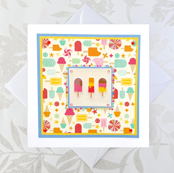 Large handmade birthday card - ice cream lollies rainbow OOAK