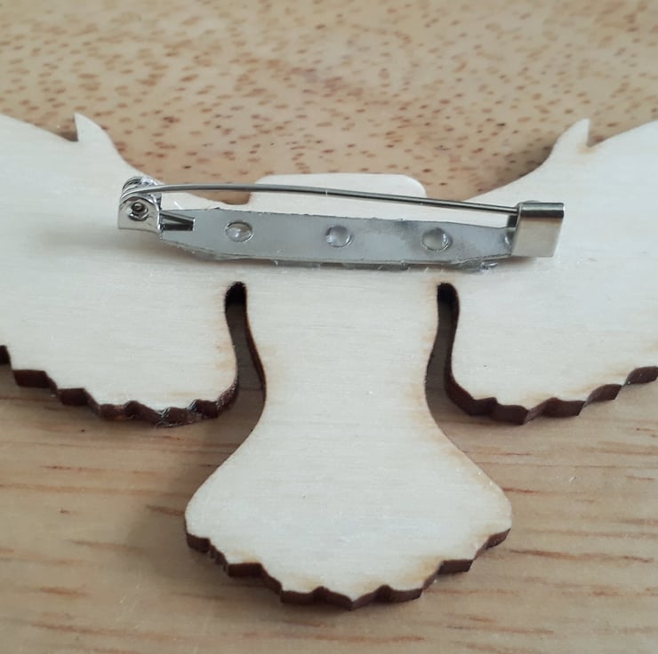 The brooch is finished with 2 coats of Danish oil, which protects the wood without making it too shiny or discoloured.