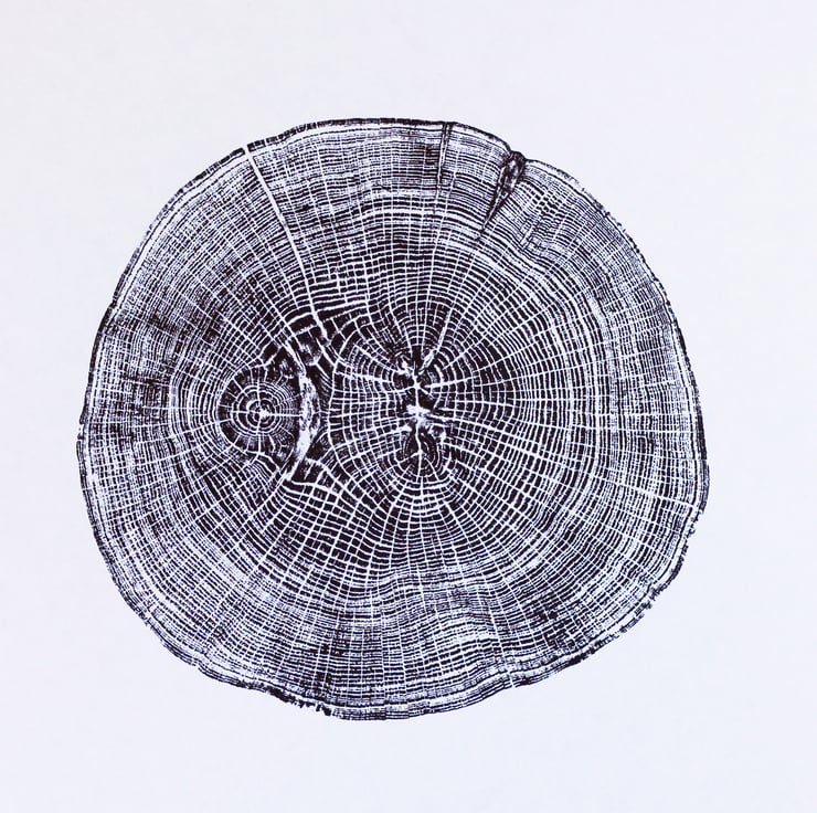 An original artwork of a cross section across the trunk of an English Oak, from a fallen tree in the historical Feckenham Forest area of Worcs, UK.