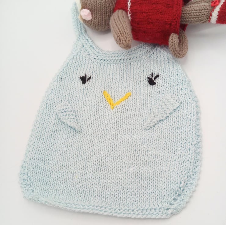 Hand Knitted Chirpy Bird Bib for a Baby, Baby Shower Gift, Baby Gift, Baby Clothes, New Baby Gift, Baby Accessories, Dribble Bib