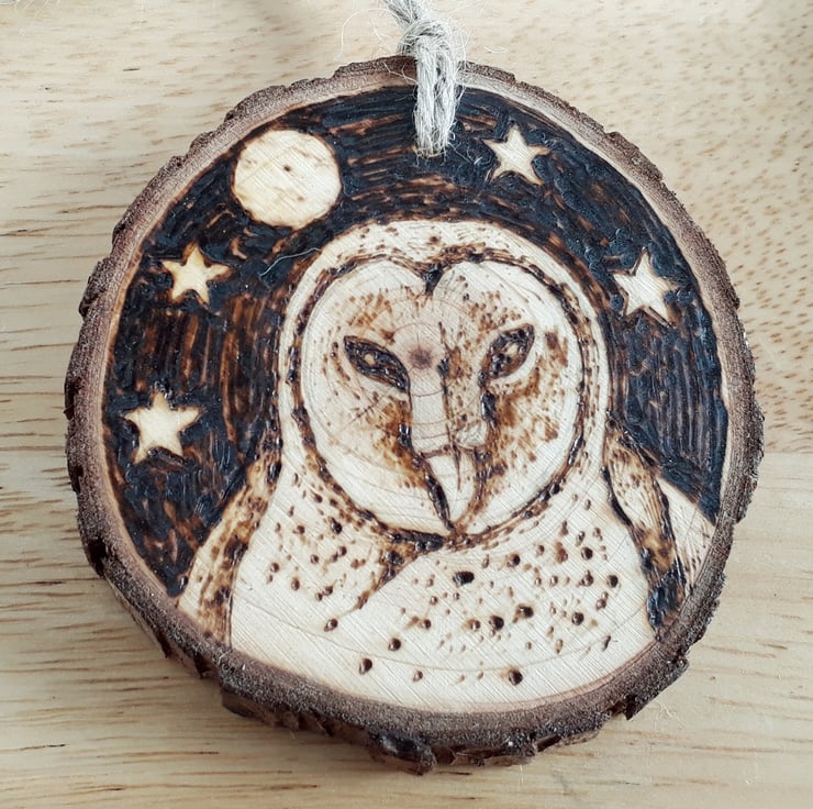 Each wood slice is unique as I hand draw each design onto the slices before I burn and they then take on their own personality.