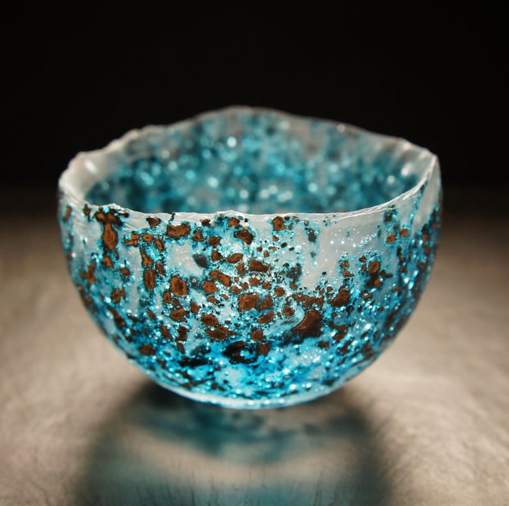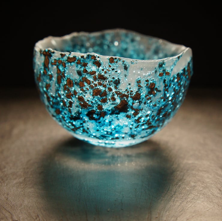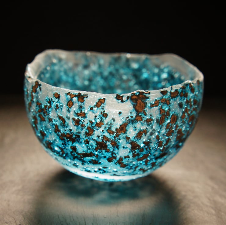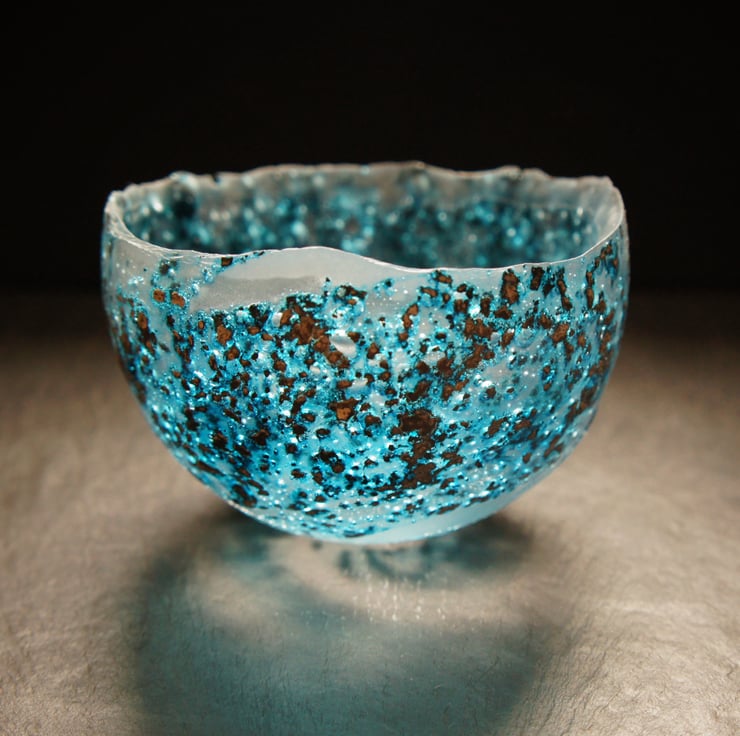 I use a variety of techniques which appear to mimic the passage of time. The glass I create becomes imbued with an ancient aesthetic, a symbol of fragile and impermanent beauty, an echo of the natural world and the human experience.