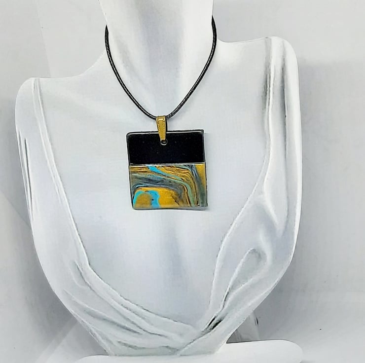 Marble and black pendant necklace featuring an eye catching split design.
