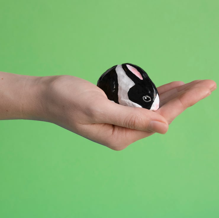 This sweet little bunny is made from recycled newspaper using a traditional paper mache moulding technique and each one is individually hand painted, all ready for Easter and just waiting for a new home!