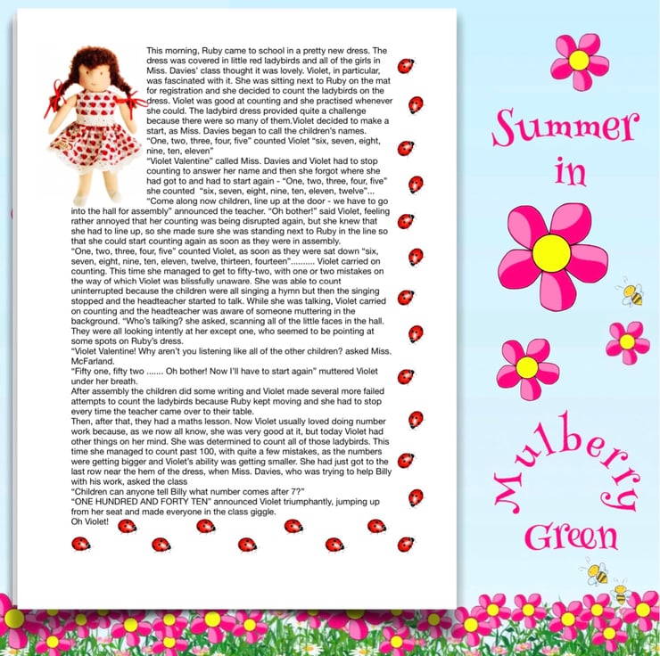 There are other children in Maisy’s class at school - Violet, Billy with his pet rabbit, Amber, Tilly, Rosie and her kittens, Amelia, Ruby, Marigold, Bobby with Max the dog, and the twins Oliver and Olivia, who have a puppy called Oscar. The dolls are all 26cm tall and baby Daisy is 16cm. Maisy and Mo love nothing more than having adventures with their friends. You can read about their adventures on my Facebook and Instagram pages - Maisy Muffin Rag Dolls and on my Mulberry Green Pinterest boards.