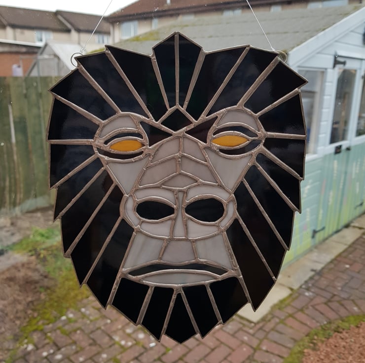 Gorillas are the largest living primates and share 98% of human genetic code. My Gorilla is made with lots of straight lines and is handmade using the copper foil technique.