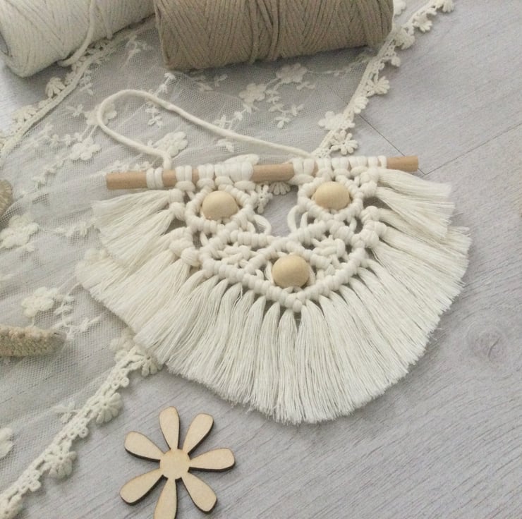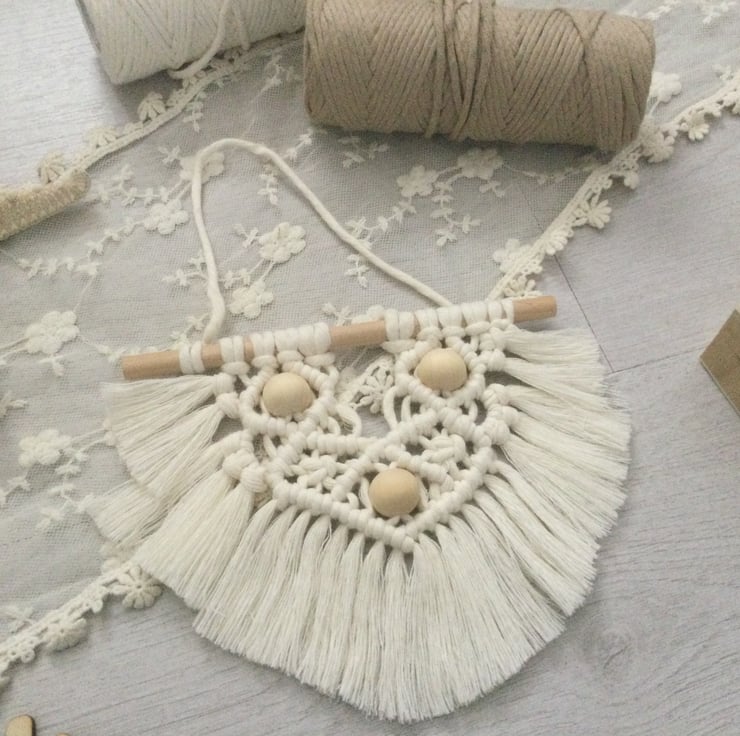 Add some texture and warmth to your home with a beautiful hand woven macramé wall hanging. Created with my favourite Bobbiny macramé thread for its softness and full fringe when brushed through. It also eco friendly which is important to me as it is 100 % recycled cotton. These also make super gift to newly weds setting up a new home or for a baby’s nursery or playroom.