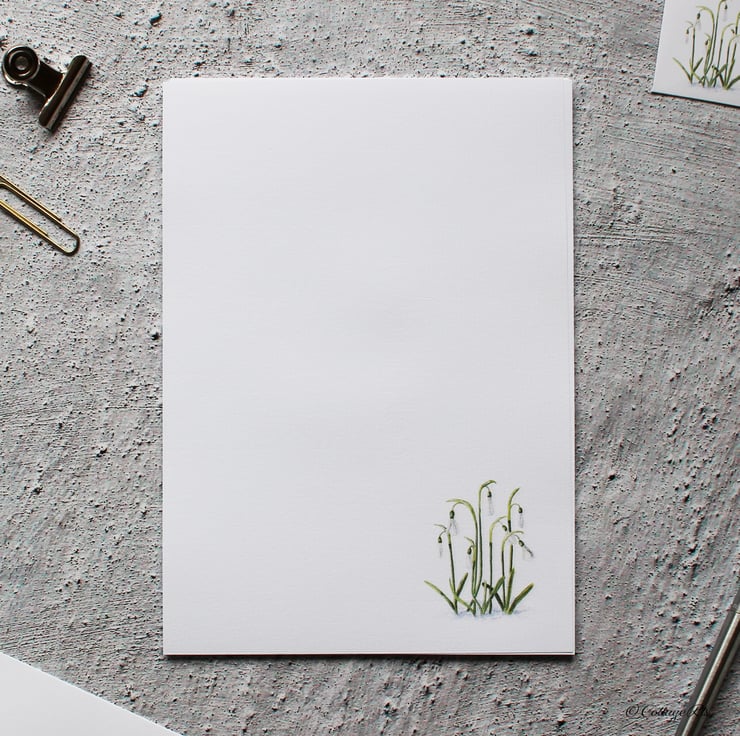 - 10 sheets of A5 letter writing paper with the Snowdrop design in the bottom right corner.