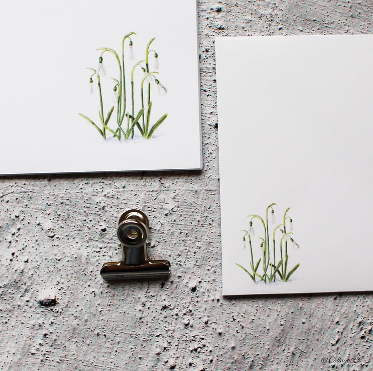 The Snowdrop design for this writing paper and envelope set was originally hand painted in watercolour by us at CottageRts.