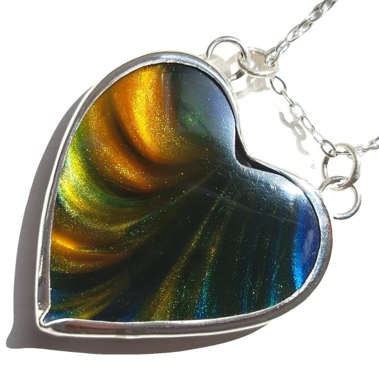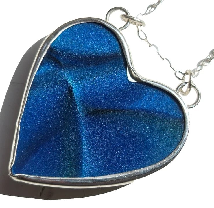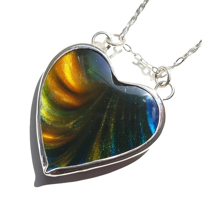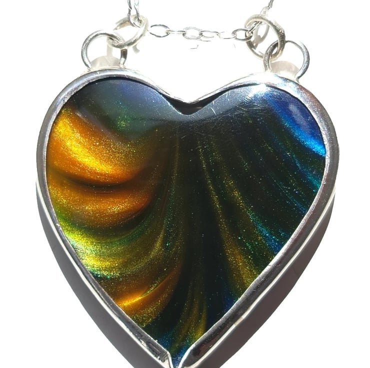Surfite Heart Necklace Sterling Silver Blue & Yellow Pearlescent Handmade