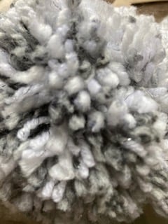 My inspiration for this combo was one of the wonderful snowy scenes we were treated to recently. The glistening of the snow and frost is reflected in the white sparkly yarn, also picking up the greys of the sky. This is a soft knit with a wide rib and cable pattern in an adult size.
