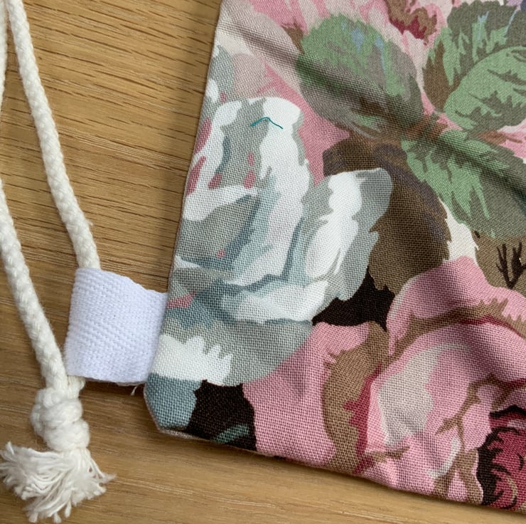 Drawstring bag with rucksack style cords in Sanderson Chelsea cotton. Perfect for PE kits or as a shoe bag or small laundry bag