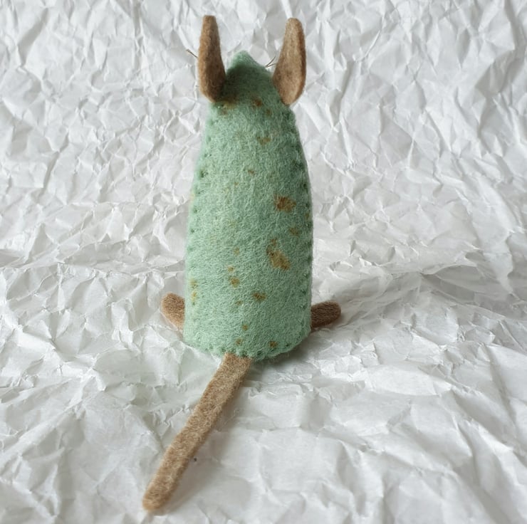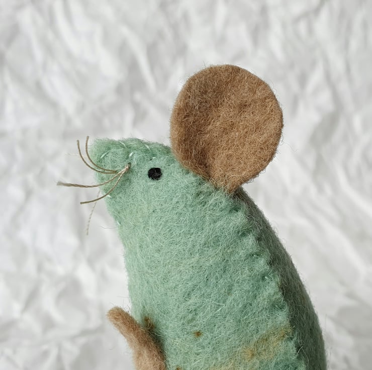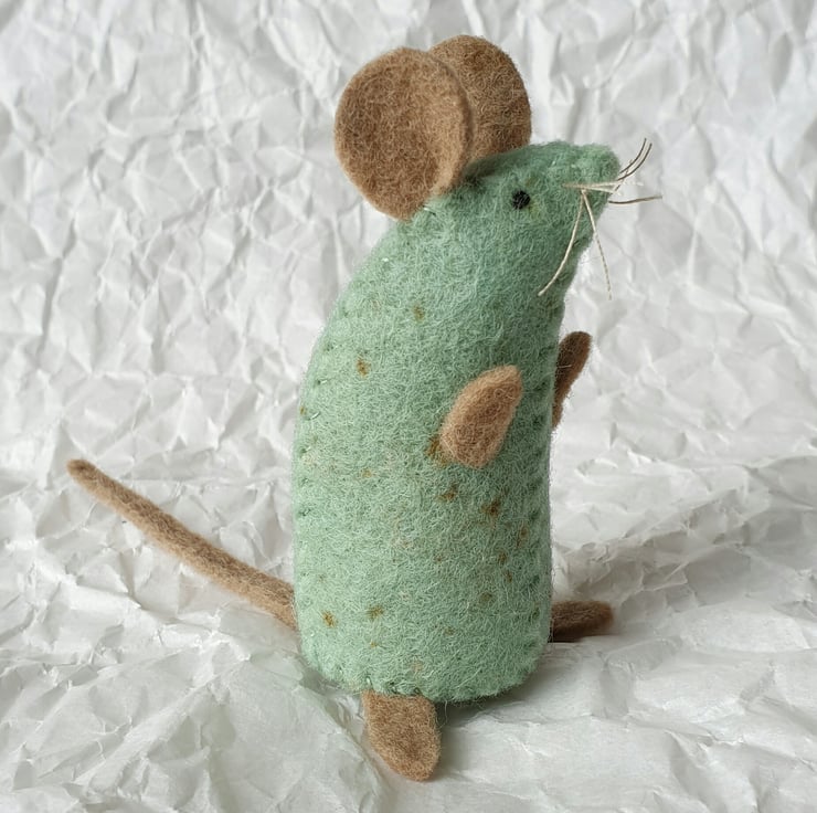 This design very much had her in mind - a mouse that would sit up and show its sweet curious nature. At the same time, I was looking to make something that really showed off the special nature of my naturally dyed and speckled felt.